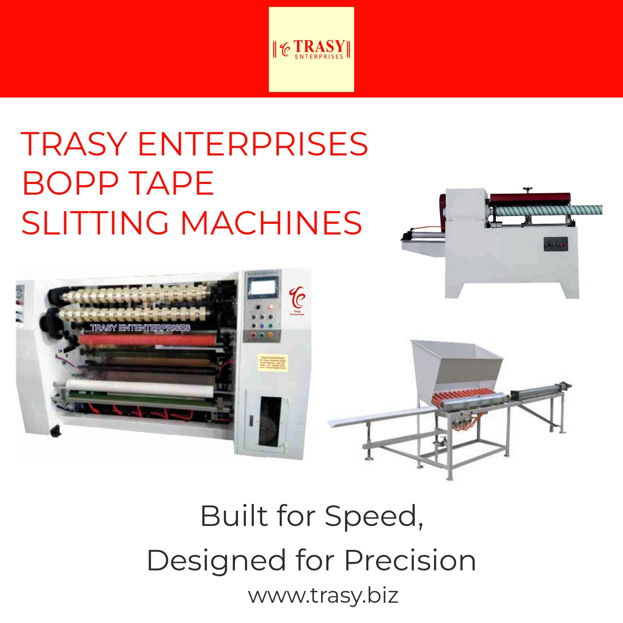 Proudly Made in India, Trasy Enterprises Cello Tape Slitting Machines meet global manufacturing standards while remaining cost-effective. With strong after-sales support, technical guidance, and customization options, we help our customers grow their tape business with confidence.